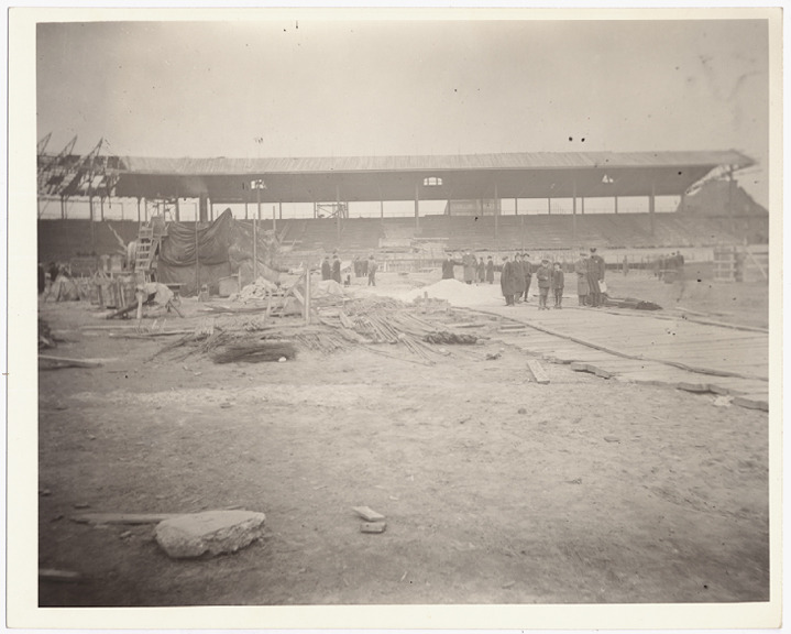 Weeghman Park under construction, circa 1912-1914. Weeghman Park was renamed Wrigley Field in 1927.