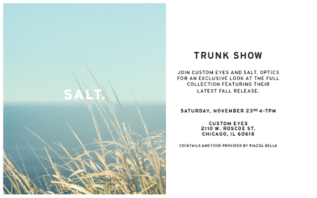 Join Custom Eyes, Saturday, November 23 from 4-7 PM for their Trunk Show!