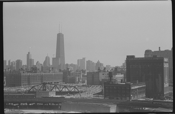 John Hancock Center visible behind the industrial near northwest side, 1972.