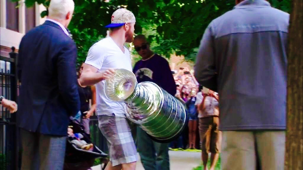 The Stanley Cup made its way to the Southport Corridor at Patrick Sharp’s house, where a number of team members joined him on his rooftop on Tuesday. Gotta love our neighborhood and neighbors!