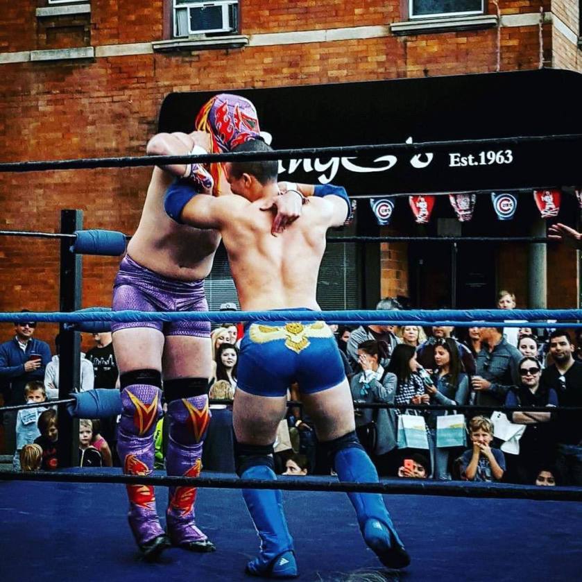What did I just walk into???? #lakeviewtacofest #wrestling #whaaaaat (at Samuel Adams Lakeview Taco Festival.)