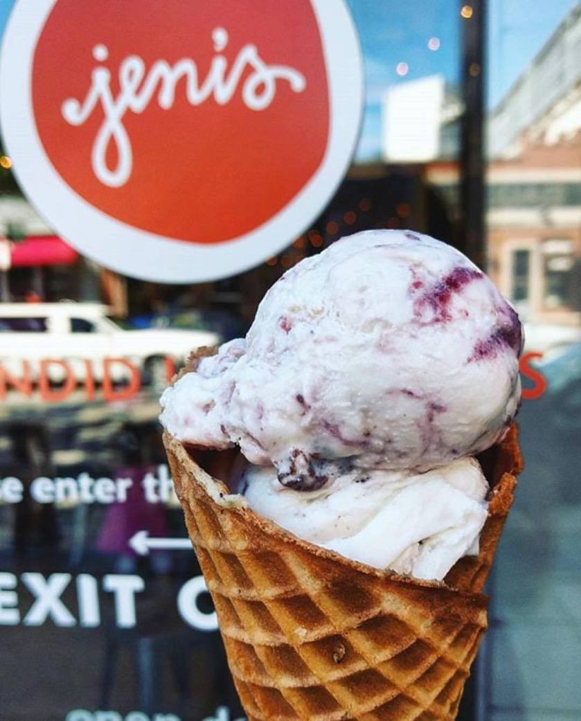 Bite me! Goat cheese + cherries and butterscotch + roasted pecans. Heaven. (at Jeni’s Southport)