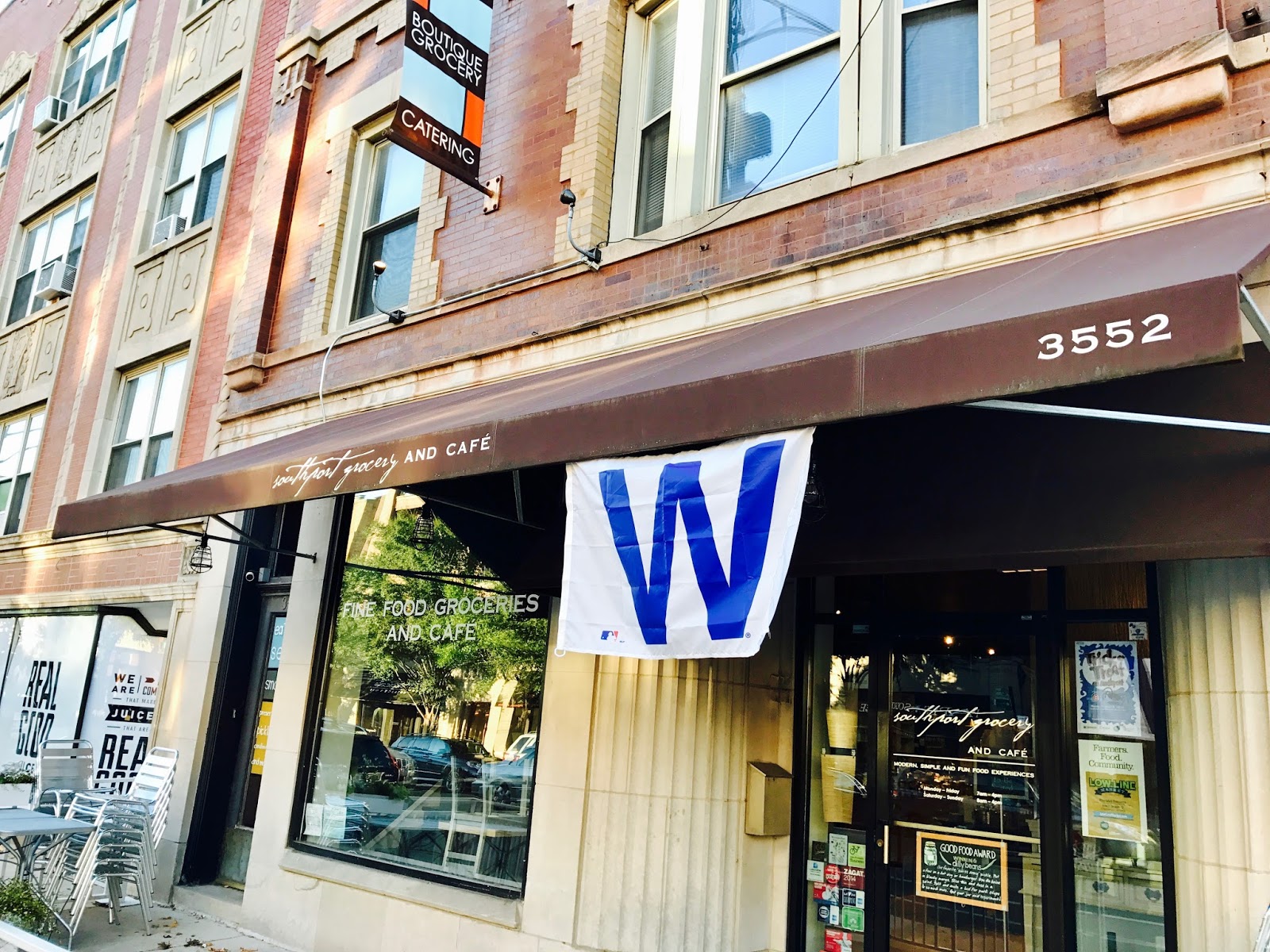 #FlyTheW is all over Wrigleyville\’s Southport Corridor in hopes of a Chicago Cubs World Series win!
