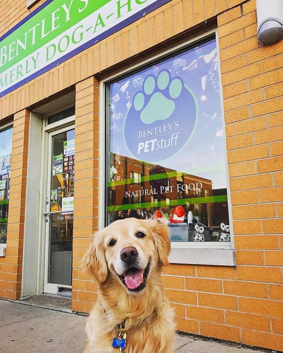 THIS PLACE IS UTOPIA! Buy me a raw-hide stick and let me eat 83 bones outside. (at Bentley’s Pet Stuff)