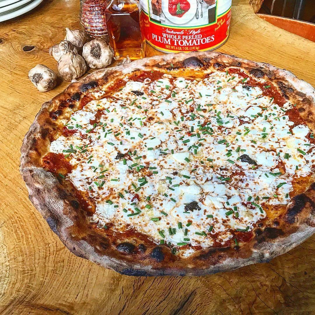 Black and White Pie. Recipe from one of my all time favorite pizza people @uncle_pizza Black Garlic from my main man @chilipowders Chèvre, Mozz, Chives, Roasted Heirloom Tomato/Black Garlic. At Southport until we run out of Black Garlic!! #coalfirechicago (at Coalfire)