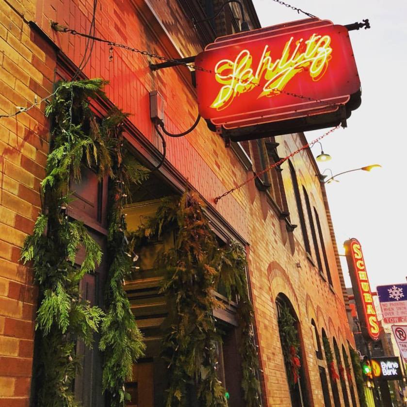 “City sidewalks busy sidewalks dressed in holiday style” 🎄🎅🏻❄️ (at Schubas Tavern)