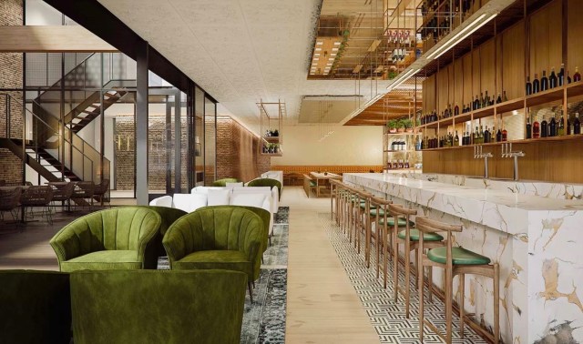 The restaurant’s name is a callback to the building’s history as a Schlitz tied house, serving beer only from that brewer. Five years ago, the 114-year-old building earned distinction as a Chicago historic landmark. Tied House is connect to Schuba’s and will be two levels. There will be a bar and outdoor seating downstairs. The massive courtyard will feature a fireplace and space for horseshoes. The space takes up 4,800 square feet with 359 seats upstairs and 159 downstairs. Patrons won’t need an event ticket to hang out, and the extra room will reduce crowds that gather before shows inside Schuba’s narrow bar area. Curbed Chicago featured one of the renderings in June. Gensler is handling the space’s design.