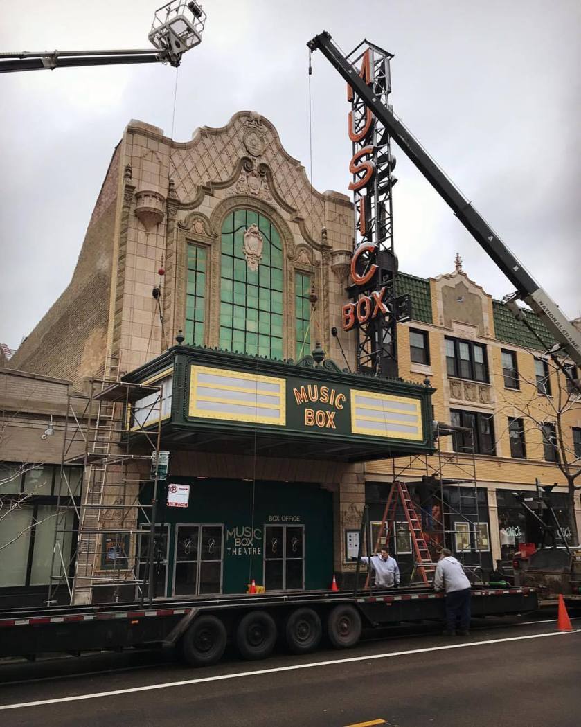 Our new marquee is up and shining bright! We had to replace the entire bottom portion (the vertical neon is unchanged) and tried to keep it as close to its previous incarnation as well as the original 1929 marquee as possible. A bit of a facelift for our saggy old self. #musicboxtheatre (at Music Box Theatre)