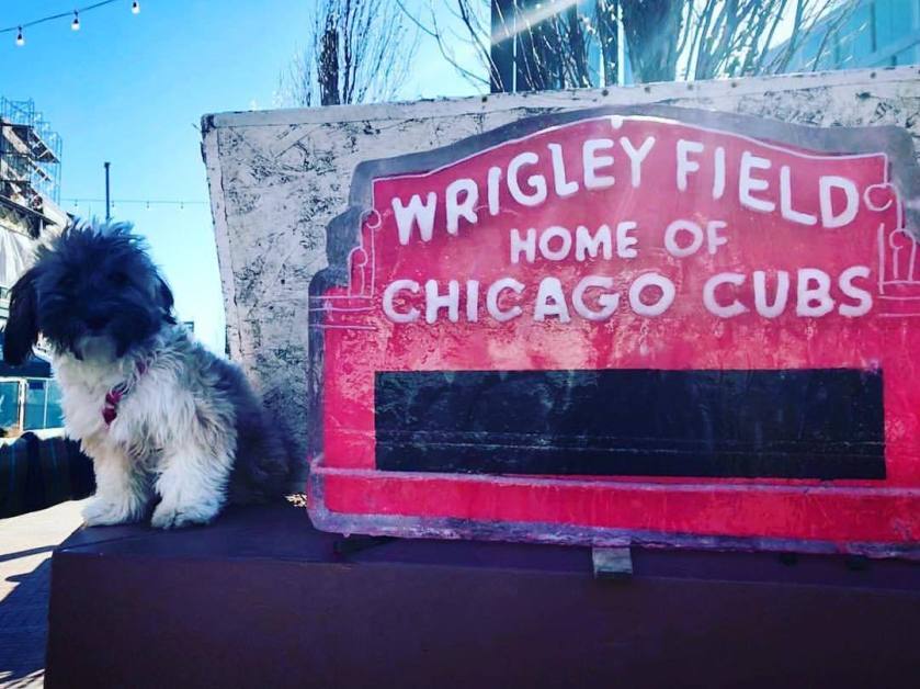 It’s a beautiful day at The Fur-iendly Confines! 💙❤️#gocubsgo #flytheW #addiesadventures #tailsofaddison (at Park at Wrigley)