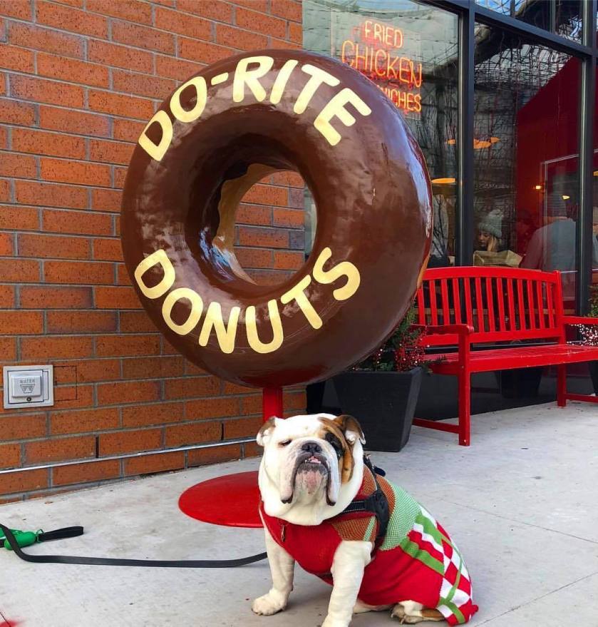 #badgerandangus #angus #bulldogsofinstagram #igbulldogs_chicago #chicagogrammers #chicagobulldogs #tbox #tbox2018 #12barsofxmas #12barsofchristmas #twelvebarsofchristmas #pubcrawl #barcrawl #pupcrawl #chicagoblogger #chitown #chicity #thingstodoinchicago #wrigleyville #pajamaparty #chicagochristmas #chicagostyle #chicagobars #chicagofood #doritedonuts #donuts #uglysweater #freehugs #staywarmchicago (at Do-Rite Donuts & Chicken Wrigleyville)