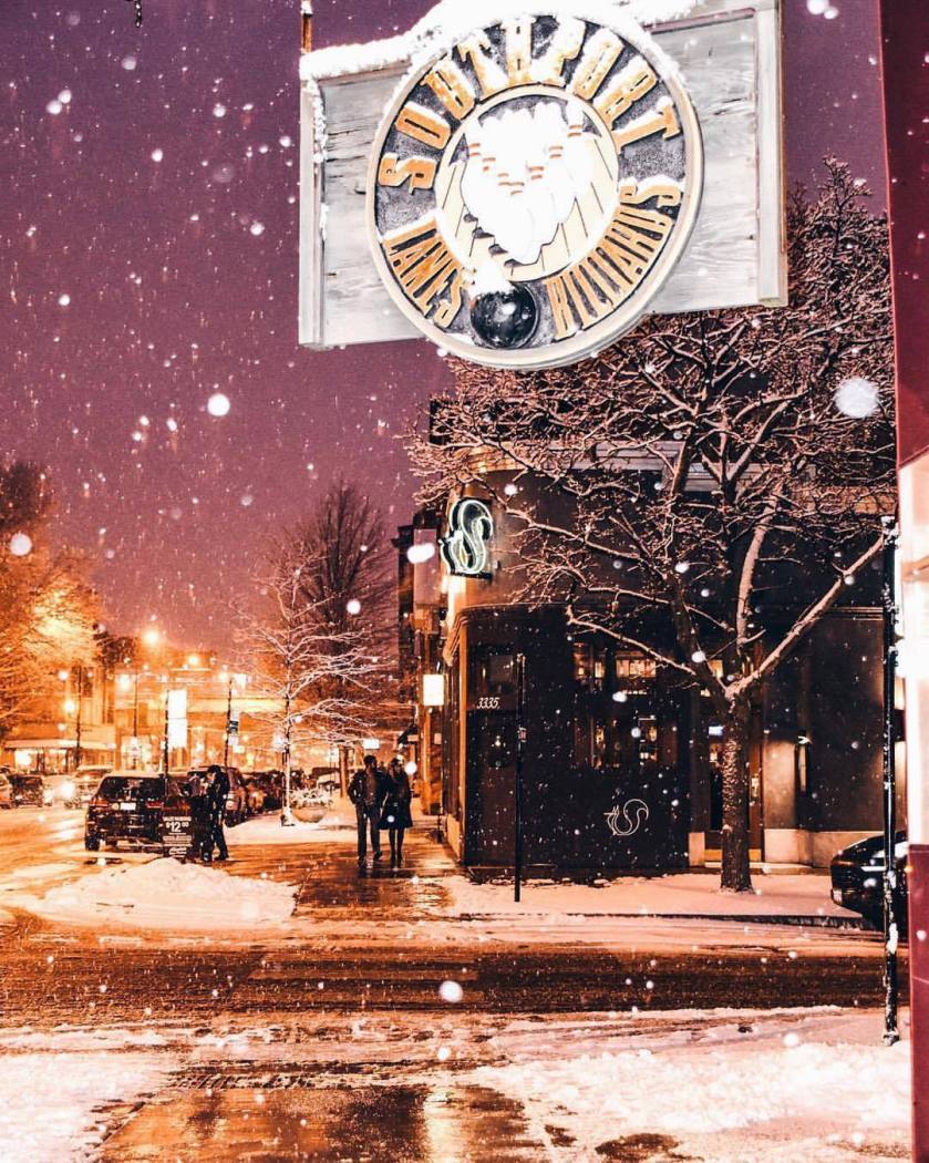 One of my fave shots from last year, such a calm & peaceful night strolling through the Southport corridor during snowfall ☺️ (at Southport Lanes)