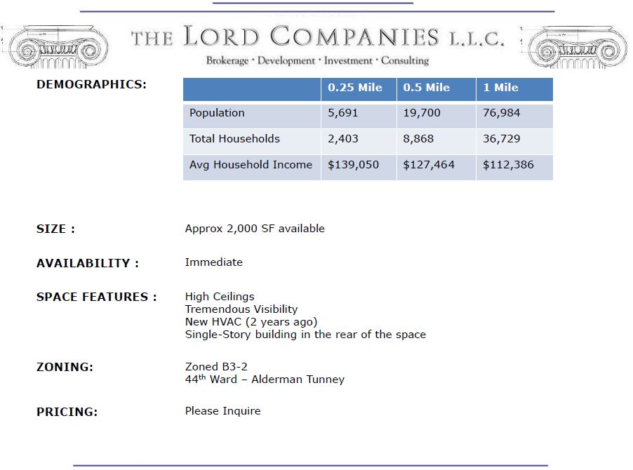 \”Join one of the most unique and desirable retail corridors in Chicago. The Southport Corridor is a combination of national high-end brands and successful trendy boutiques and businesses. Located within the Lakeview neighborhood, dense residential neighborhood also hosts year-round tourists visiting Wrigley Field’s entertainment district a few blocks away. The retail corridor is nestled within Lakeview’s dense residential population servicing an economically strong demographic comprised of millennials, young families, and affluent city dwellers. Bus lines run along Southport Avenue and the Southport Brown Line stop services 1,137,800 riders annually.\”