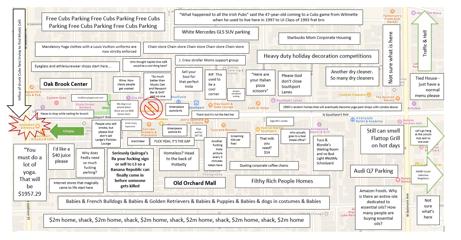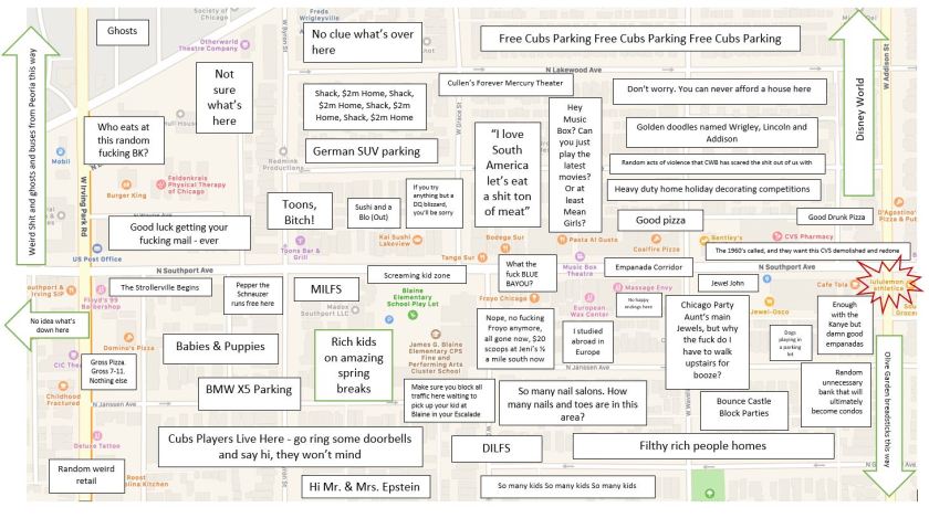 We love Judgmental Maps, so with all of your hysterical entries on Instagram, we created one for the Southport Corridor. Who did your neighbors offend? Who else is as offended as we are? Sound off your judgments in the comments.