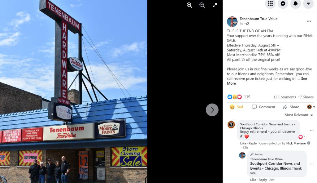 Tenenbaum True Value Hardware will officially close this summer according to ABC 7 Chicago.