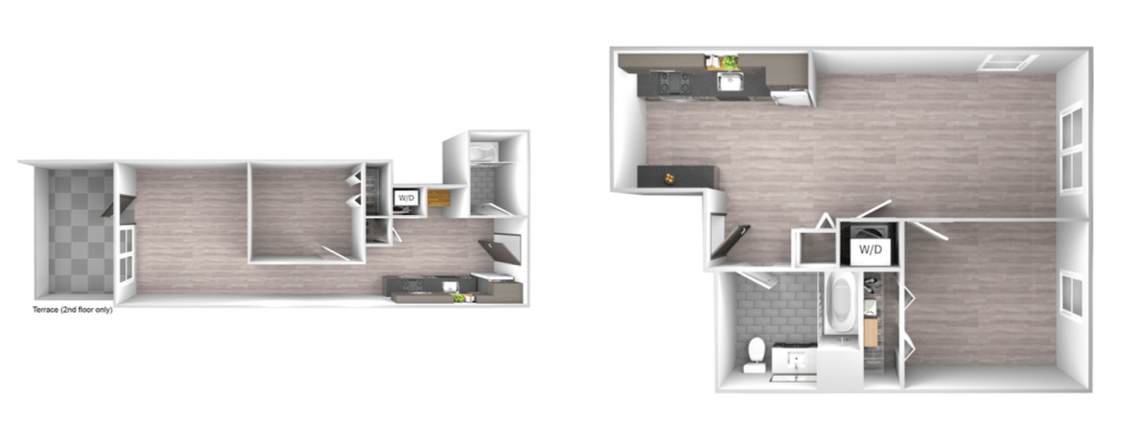 Of the included rental units, 108 are laid out as one-bedrooms, while the remaining 12 residences are two-bedrooms. Apartments come with 9’4” ceilings, stone countertops, stainless steel appliances, full-sized washer and dryers, and walk-in closets. Several of the units also come with attached terrace spaces. Spec-wise, available one-bedrooms range from 603 to 799 square feet, beginning at $1,820. Two-bedrooms span 996 square feet, beginning at $2,800.