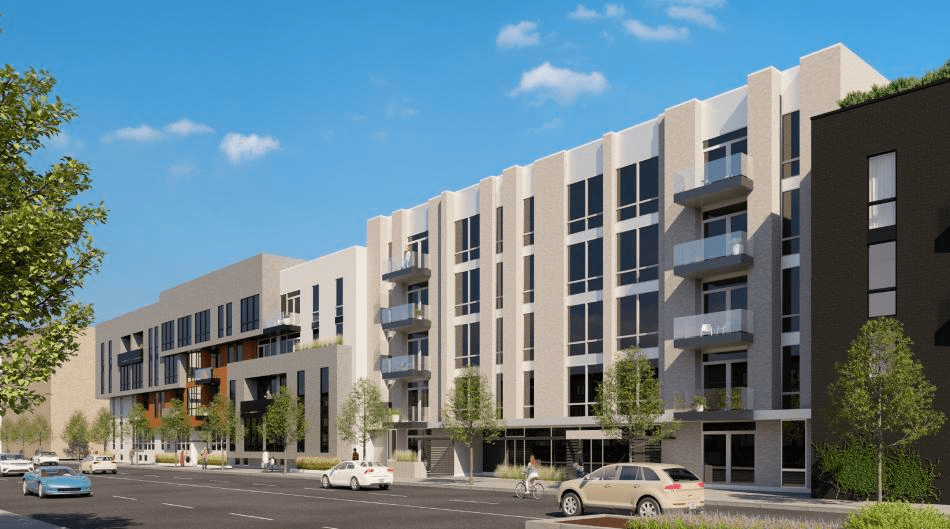 An additional variance was approved to allow the building to stand 61 feet tall, one foot over the 60-foot zoning limit. The project is offering a rooftop deck amenity space and has planned for the building’s elevator to reach up to the roof for accessibility. Due to the elevator overrun, the building goes beyond the zoning limit by one foot.