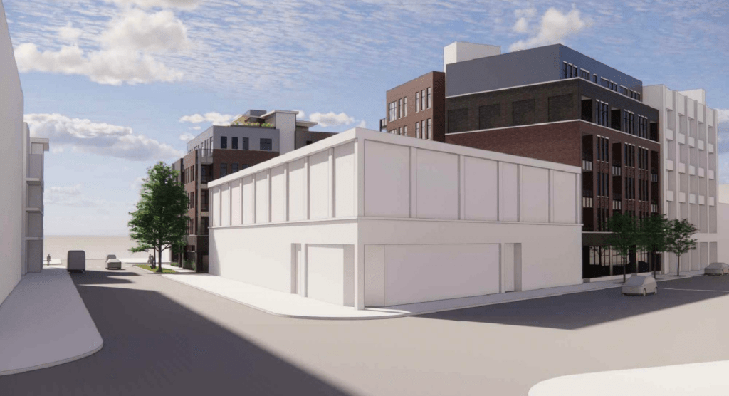 The other, four-story building, located around the corner from the first, is also a transit-oriented development and will have 17 off-street parking spaces in the first floor’s rear, according to its plans.”