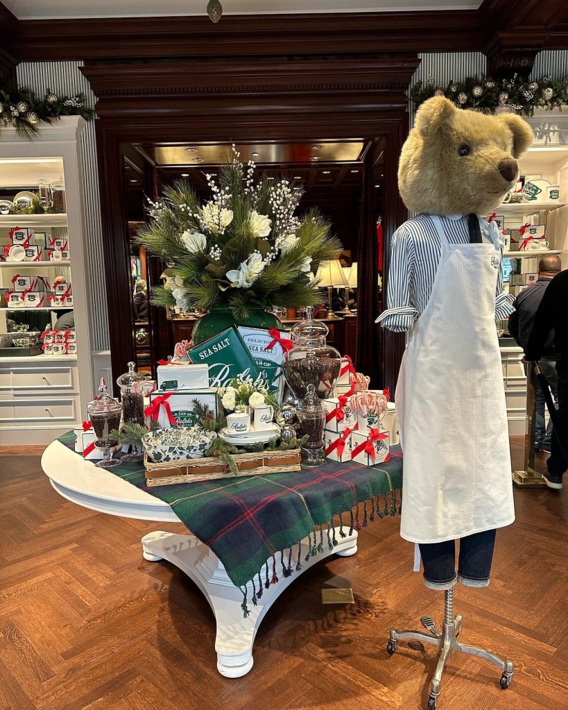 Located adjacent to RL Restaurant—the brand’s first-ever hospitality offering, which debuted in 1999—the 16-seat shop channels Ralph Lauren’s signature preppy vibe with herringbone wood floors, wainscoting, tufted banquettes and a crisp green-and-white color scheme, plus a fireplace and large windows overlooking Michigan Avenue. Even the staff, who dress in Ralph Lauren striped shirts and matching ties, kind of look like they’re in a catalog.