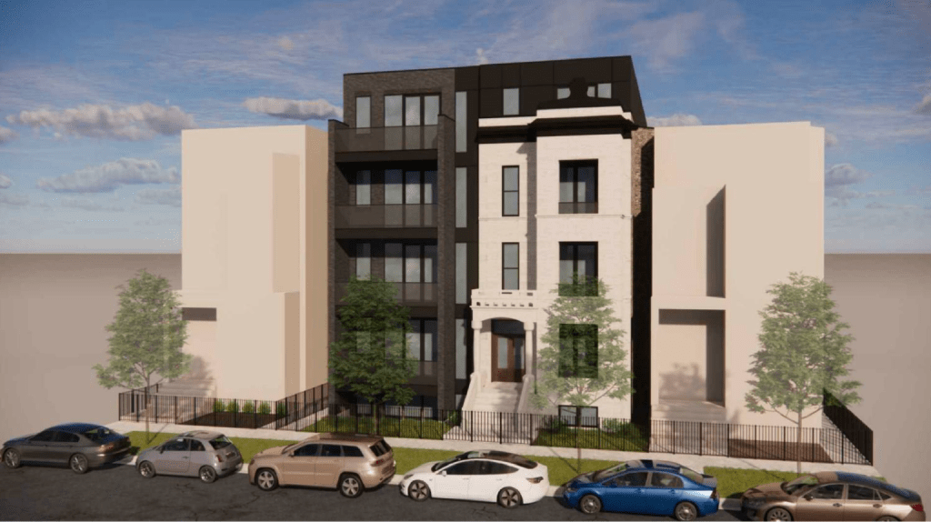 The new structure will feature dark-gray brick cladding for the most part, while the central connection piece and the one-story addition will have black metal panels. The upcoming residents will have convenient access to several transportation options, including CTA Routes 22, 80, and 152, as well as the CTA Red Line at the Addison station, all of which are located within approximately a five-minute walk. With the approval from authorities, the site has been rezoned for construction to commence. However, the developer has not disclosed a specific timeline for the project’s completion.