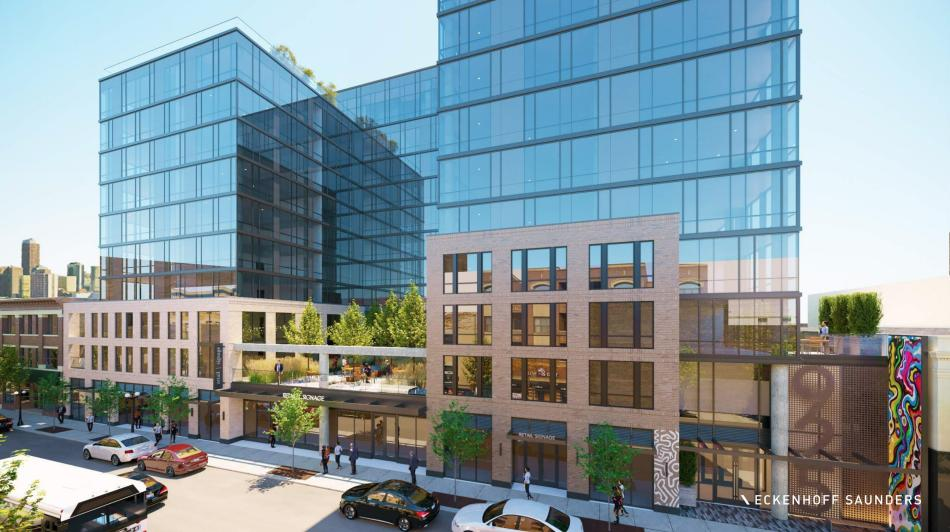 Crafted by Eckenhoff Saunders, the envisioned design encompasses an 11-story mixed-use structure. The architectural concept prioritizes maximizing the land’s footprint initially, followed by creating setbacks on the sides and a central courtyard. This approach redistributes the massing vertically, resulting in heightened building stature. The exterior will feature a blend of smaller brick facades complemented by a glass and metal window wall system.