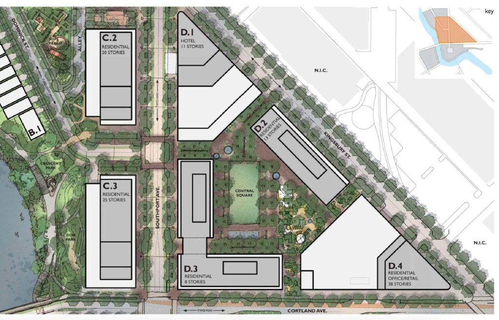 Foundry Park is now designed with Southport Avenue transformed into the development’s dynamic central spine—a true focal point for activity and connection. This extended thoroughfare, reaching down to Cortland Street, will become a bustling commercial artery, complete with protected bike lanes, a mix of street-level shops, restaurants, and national retailers—all energized by Tax Increment Financing to foster smart, inclusive growth