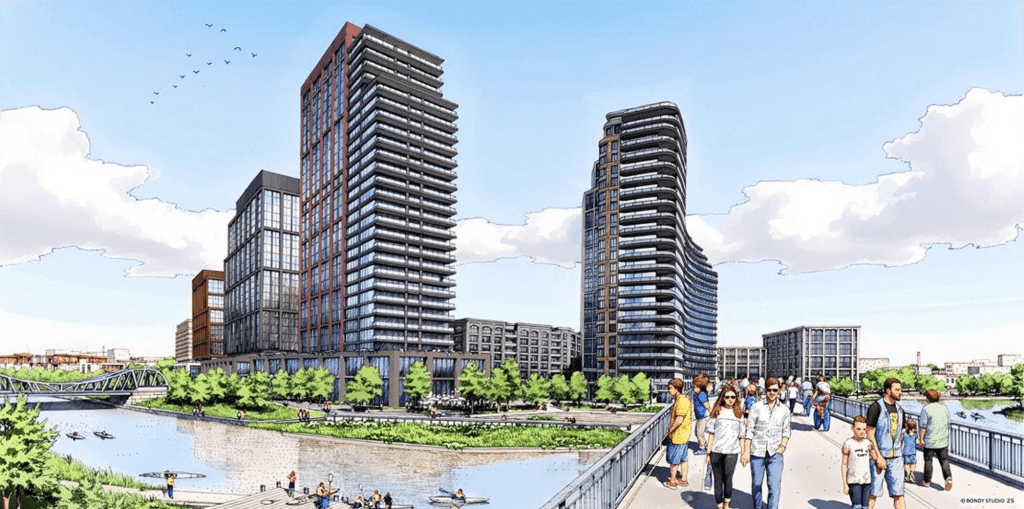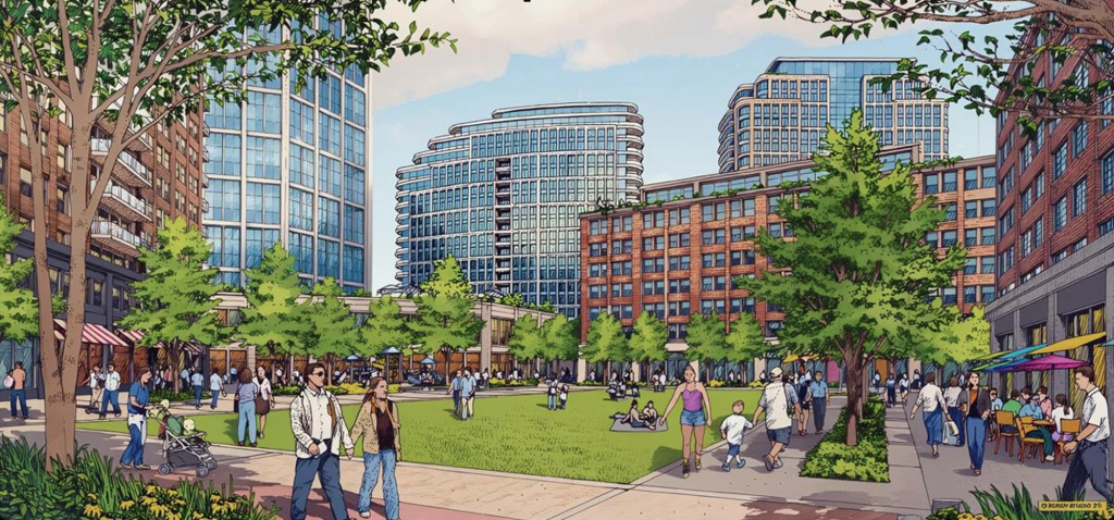 Foundry Park encompasses approximately 28 acres and will include a mix of residential, commercial, hospitality, and office spaces. Plans call for roughly 3,690 apartments and condominiums, 19 single-family homes, 28 townhomes, a hotel with 180–200 rooms, about 420,000 square feet of retail space, and approximately 350,000 square feet of office space.