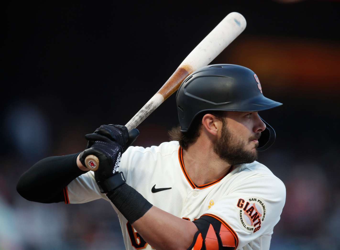 SAN FRANCISCO, CALIFORNIA – SEPTEMBER 1: San Francisco Giants’ Kris Bryant (23) bats against the Milwaukee Brewers in the first inning at Oracle Park in San Francisco, Calif., on Wednesday, Sept. 1, 2021. (Nhat V. Meyer/Bay Area News Group)
