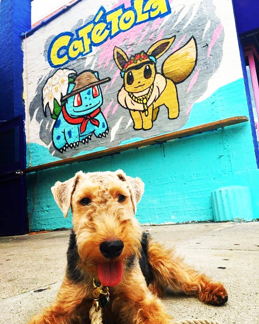 #welshie #welsh #welshterrier #welshterriersofinstagram #instawelsh #welshterrierpuppy #welshiesofinstagram #dogswithbeards #beardedlady #dogsofig #citydog #dogsofchicago #dogsoflakeview #chidogs #buzzfeedanimals #ruffpost #dogscorner #barkpost #pokemon #pokemongo #pikachu #gottacatchemall #publicartchi #chicagomurals #chicagostreetart #bestempanadas #southportcorridor #lakeview (at Cafe Tola)