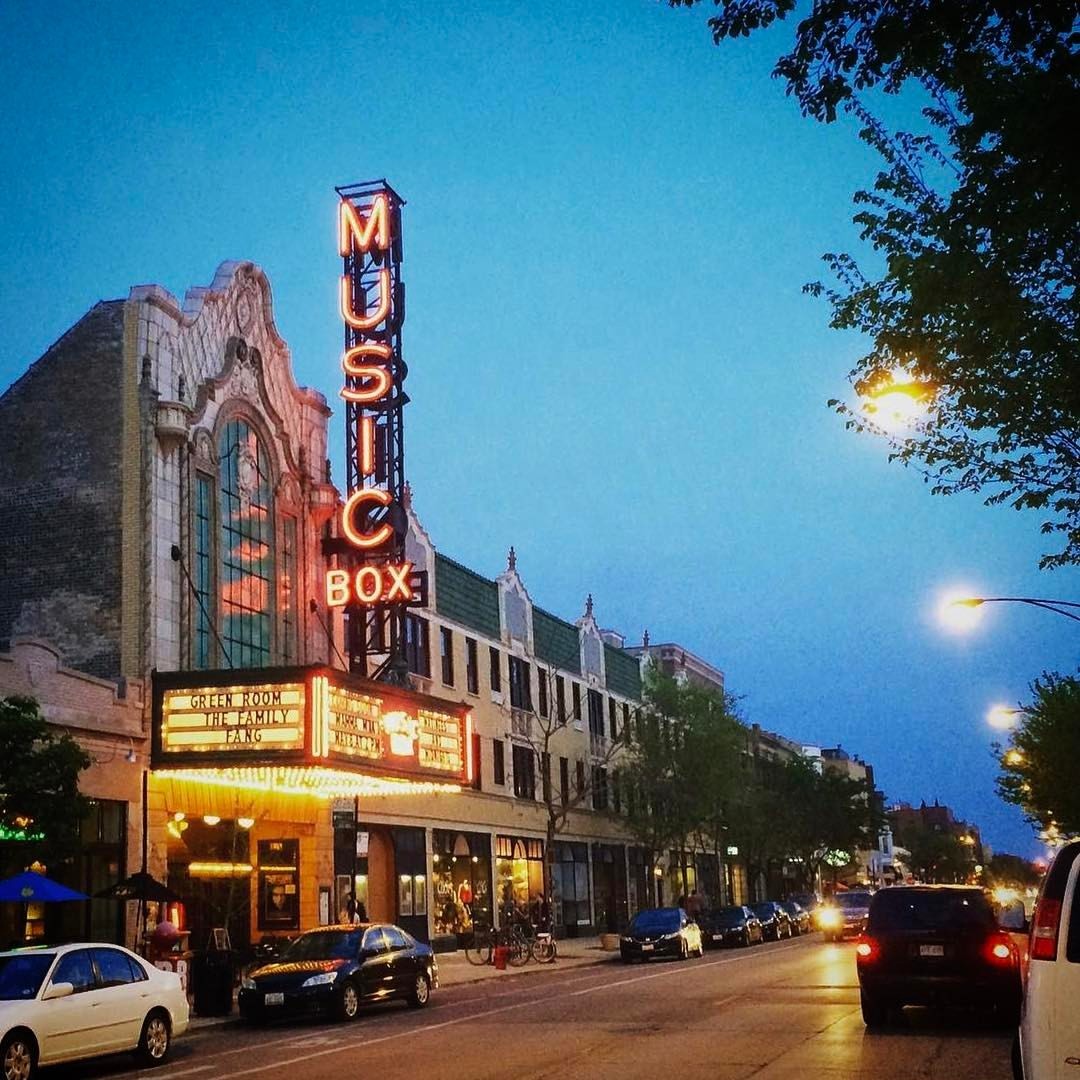 It was a dreamy spring evening on #southport tonight. Our view from @froyochicago outdoor seating 😋🍦#southportcorridor #welovelakeview #sundaysonsouthport #chicago @musicboxchicago (at Music Box Theatre)