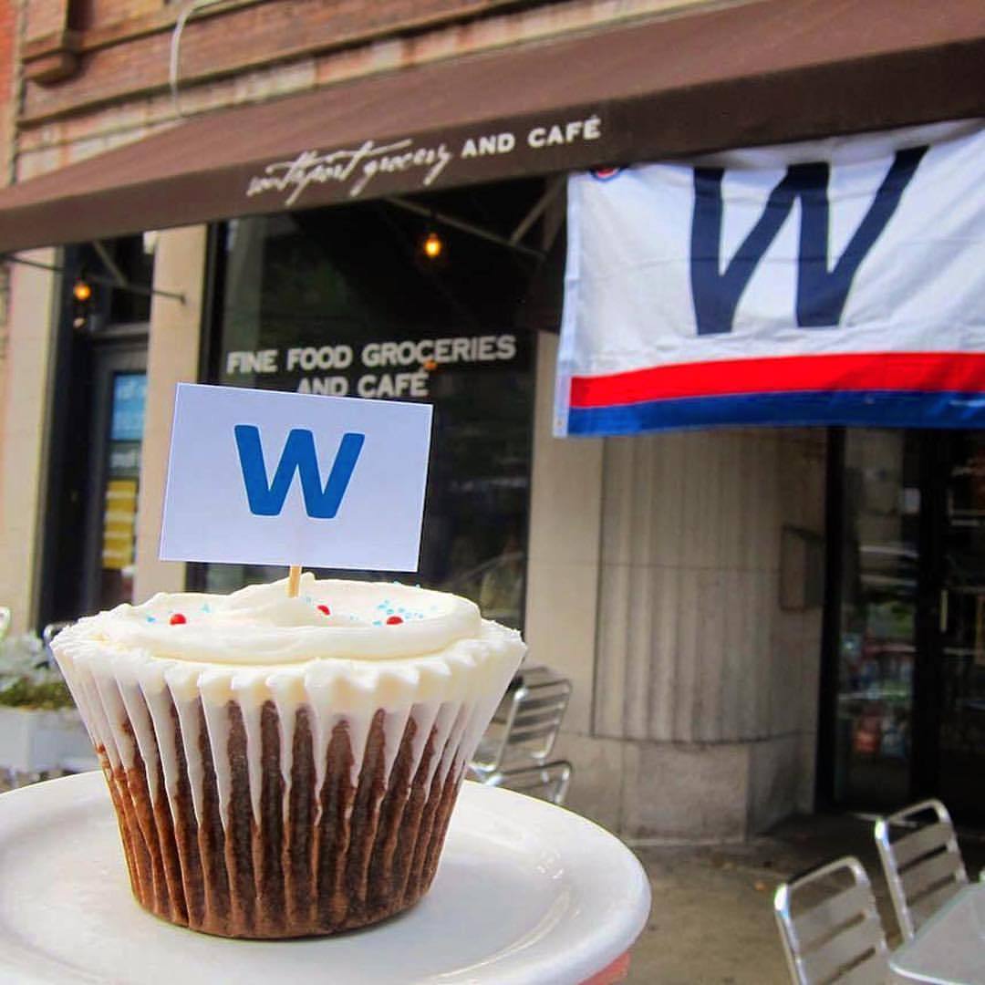 Go @cubs! Get your W flag cupcakes here! #flythew #gocubs #chicago (at The Southport Grocery & Cafe)
