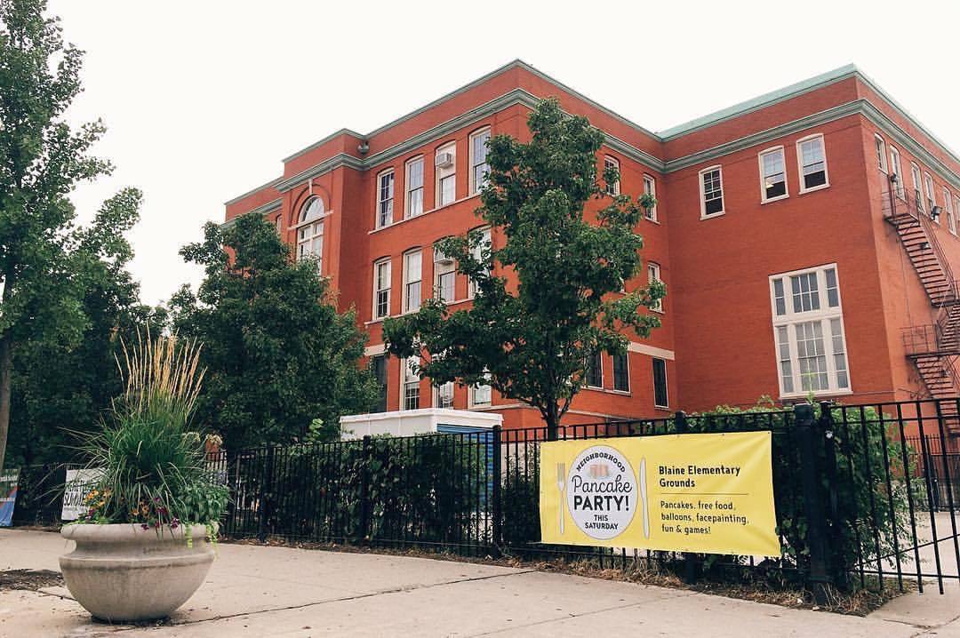 Tomorrow: NEIGHBORHOOD PANCAKE PARTY!! Free food, iced coffee, face painting, fun & games! Blaine Elementary @ 11a – 1p. In partnership with Blaine Elementary and @meinl_america. Be there or be square #pancakes #notwaffles #pancakeparty #welovelakeview #southportcorridor #chicago (at Blaine School)