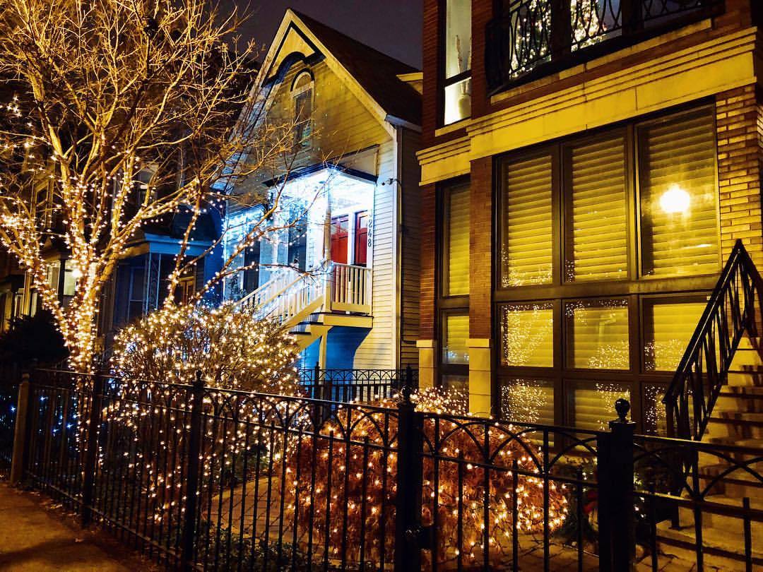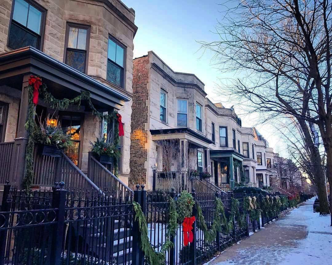 Greystones and garlands. ❤️🎄 (at Southport Corridor News and Events – Chicago, Illinois)