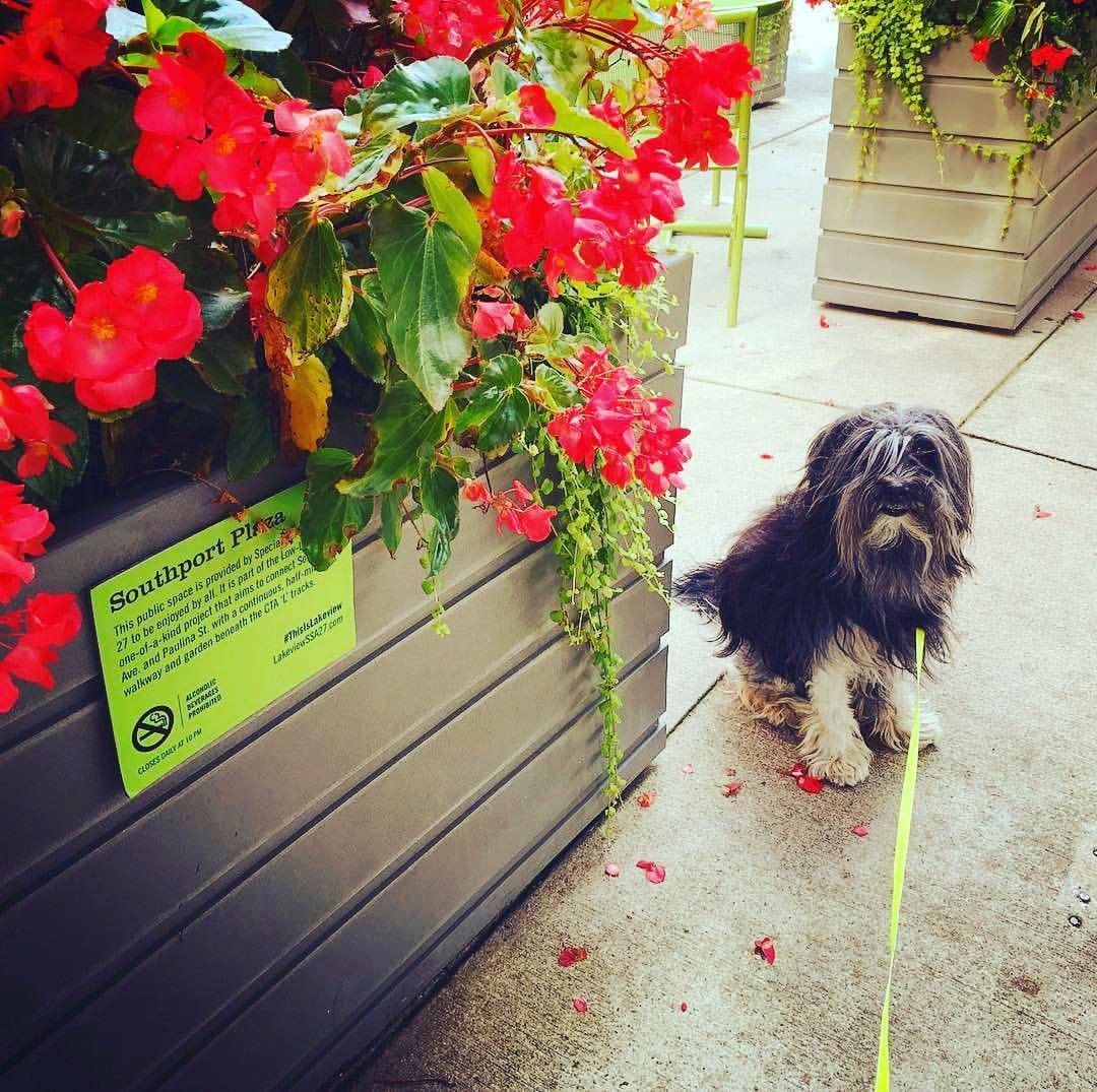 Hanging out by the Brown Line #southportcorridor #cta #el #chicago #dogphotography #neighborhoods #flowerpot #greenmarket (at Southport Corridor News and Events – Chicago, Illinois)