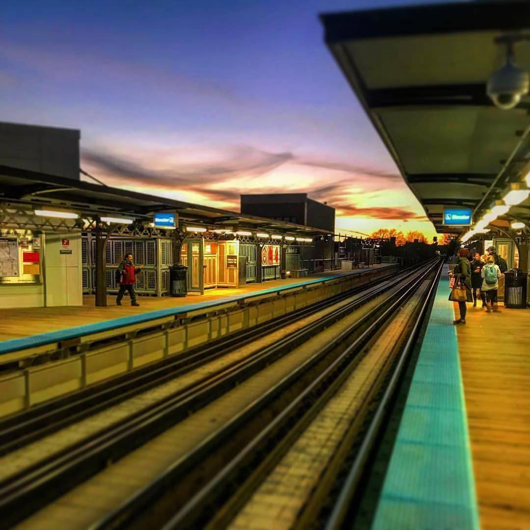 #Sunset 🌅 hour! #chicago #southportstation #cta #train #eltrain #theel #trainplatform (at Southport Corridor News and Events – Chicago, Illinois)