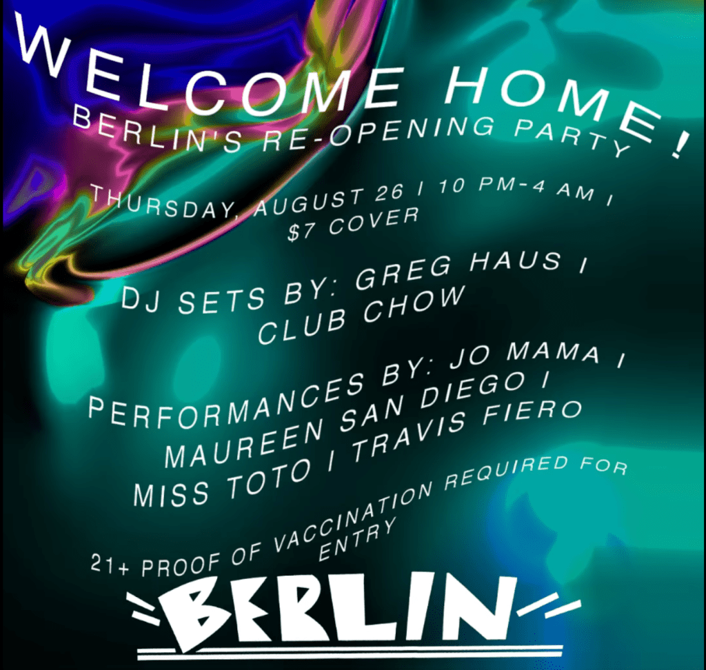 Berlin now joins many other establishments around Lakeview with full vaccination post two-weeks to enter its establishment.
