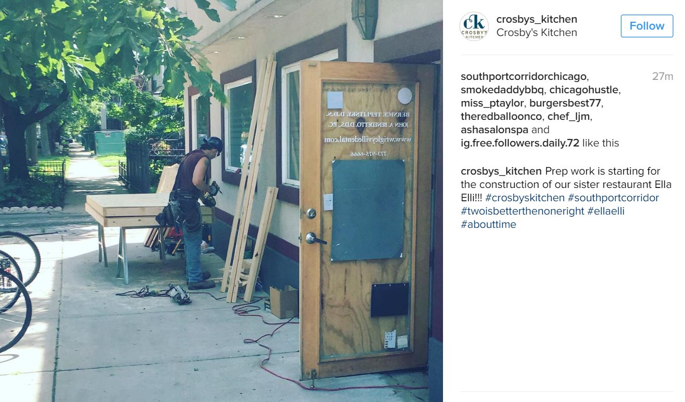 - Wrigleyville Dental Space The building behind Crosby\’s Kitchen will be re-developed and is planning to open in 2017 as an adult restaurant and full bar with French and Italian cuisine. The name of the new restaurant will be Ella Elli, and will be open for dinner only.