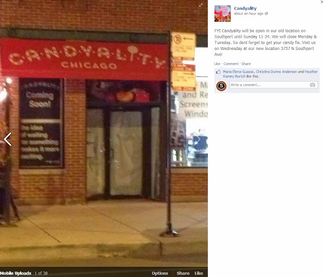 Per their Facebook page, Candyality will close their current location on Monday, November 25 and reopen at 3737 N Southport Avenue on Wednesday, November 27.