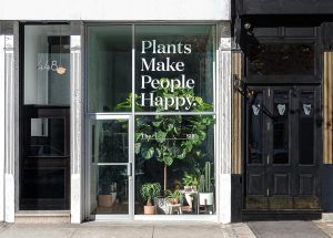 On the window of recently opened plant shop The Sill on Roscoe Street, the words “Plants Make People Happy” greet customers in a bold, white font.
