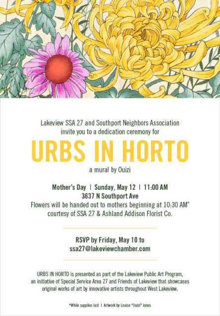 Continue reading “Lakeview is Blooming this Mother’s Day – Dedication of Artist Ouizi’s Mural “Urbs in Horto” to Take Place May 12th”