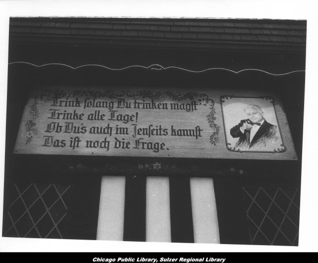 “Perhaps the largest German restaurant and “bierstube” in Chicago, many mourned the abrupt closure of Zum Deutschen Eck in January 9, 2000. In recognition of the sixth anniversary of its departure, the Chicago Bar Project presents this page in memoriam for what in German meant, “The German Corner.”