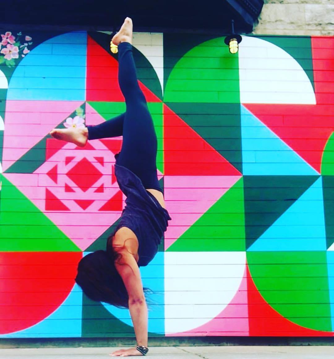 I first discovered I liked the Wall Street art photos. I had a goal of taking a picture in front of it… doing a handstand. This is @tucoandblondie my hood, I live #southportcorridorchicago